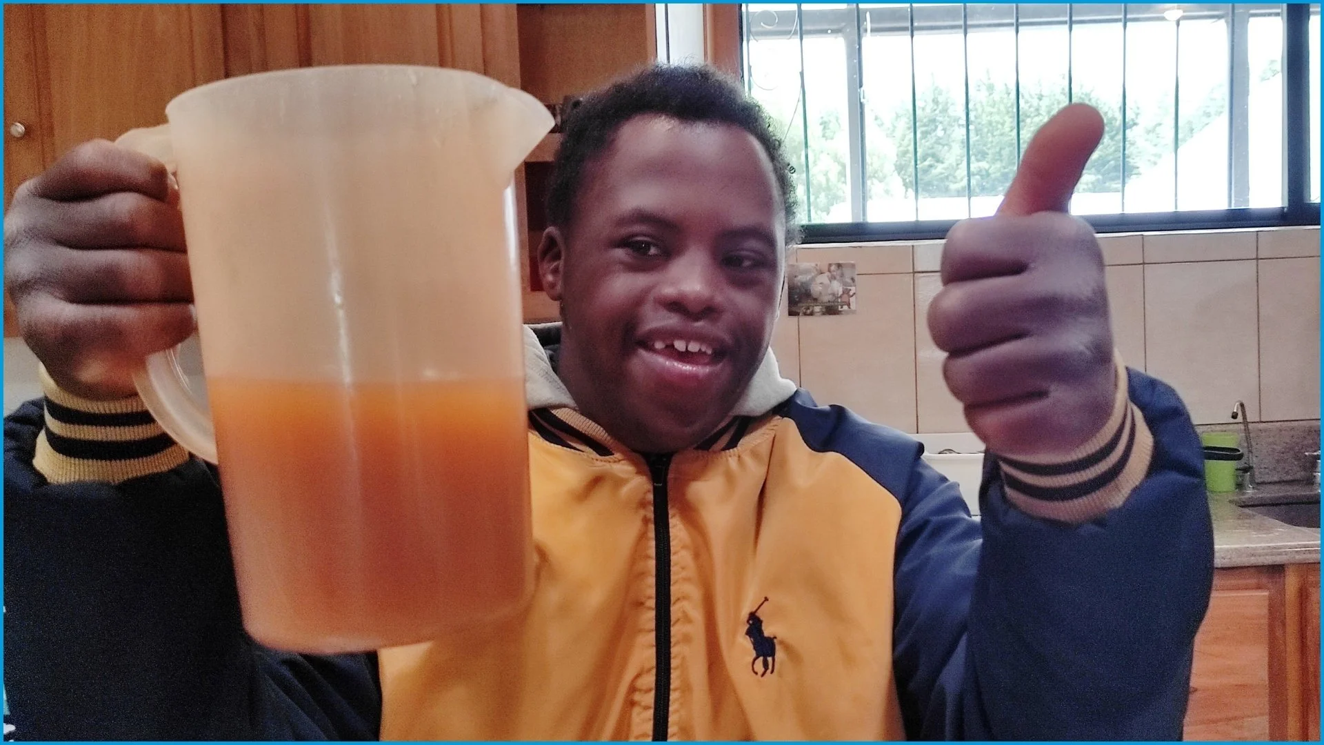 Lucas* estaba ocupado en la cocina preparando jugo de maracuyá, cuando una de sus tías (cuidadoras), Pilar, entró y se sirvió un vaso de agua. A veces se siente cohibido cuando la gente lo observa preparar comida o refrigerios, por lo que se puso nervioso y comenzó a agregar agua distraídamente al jugo. "Solo agrega un poco de agua, no demasiado," Pilar lo guió amablemente, mientras él seguía agregando más agua. Pero era muy tarde. Había hecho demasiado jugo. "¿Qué vas a hacer con tanto jugo?" bromeó Pilar. Al darse cuenta de su error, le quitó su vaso de agua y lo reemplazó con un vaso del jugo recién hecho. ¡Problema resuelto!