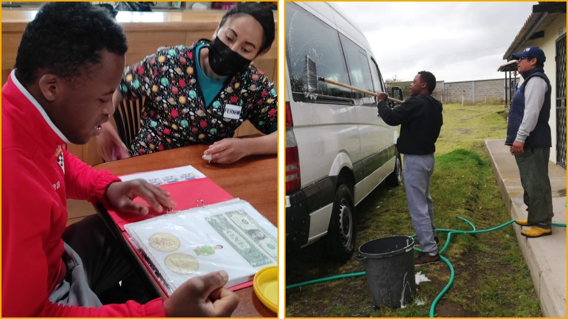 Lucas, de dieciocho años, quien tiene un diagnóstico de Síndrome de Down, se graduó del colegio a principios del verano pasado. Desde entonces, sus cuidadoras han estado evaluando cuidadosamente opciones sobre cómo utilizar mejor sus fortalezas y pasiones. Contratarlo como tío a medio tiempo y asistente de las tías en el hogar en Latacunga parecía ser la opción perfecta para él. Es trabajador y disfruta sirviendo a los demás, y rara vez necesita ayuda para completar una tarea.